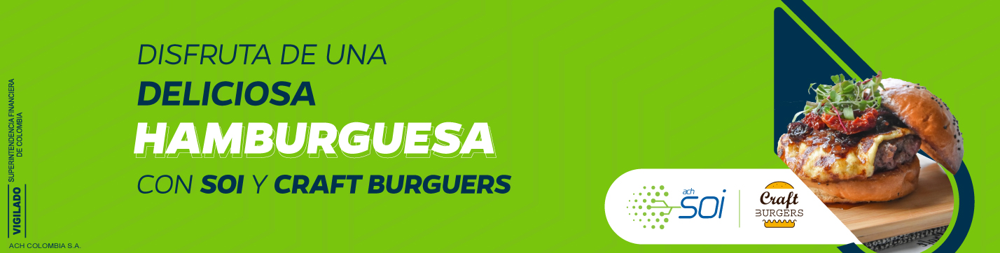 Promoción válida hasta el 31 de marzo del 2025 o hasta agotar inventario en referencias seleccionadas. Válido comprando en Justo App y/o en la página web https://www.craftburgers.com.co. El descuento se realizará utilizando como cupón de descuento el código SOMOSACH. No acumulable con otras ofertas y/o promociones. No aplica sobre costo de despacho ni propina. Válido para compra de lunes a domingo. Máximo 2 canjes x usuario al mes. Referencias que aplican: Hit Burger y Sinfonia.