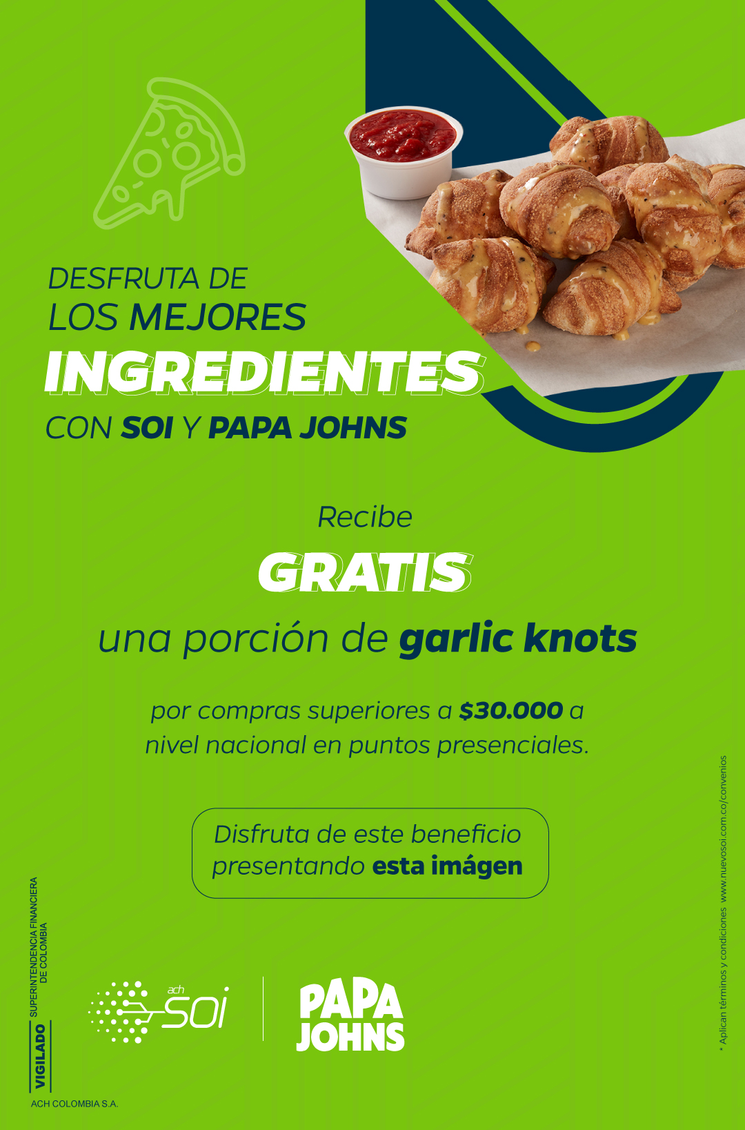 • Se entregará una (1) porción de Garlic Knots por factura igual o superior a $30000, no acumulables.