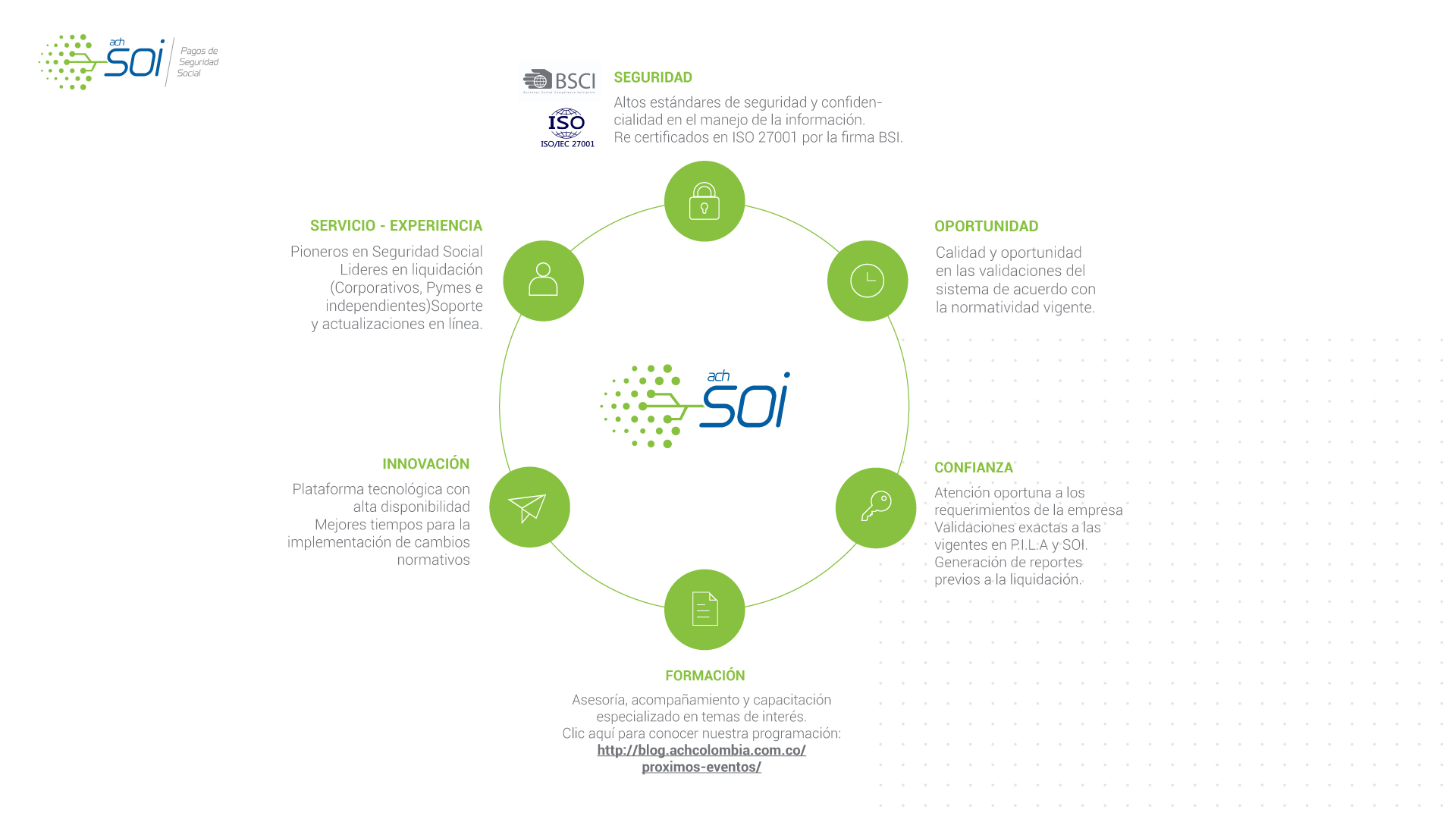 SOI es la plataforma para la liquidación y pago de la seguridad social que las entidades financieras del país han dispuesto para sus aportantes con el fin de brindar calidad, seguridad y confianza en cada uno de tus procesos. ¡Somos pioneros en el sistema de Seguridad Social, con el servicio disponible desde al año 2006!